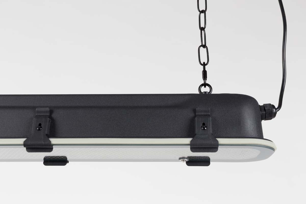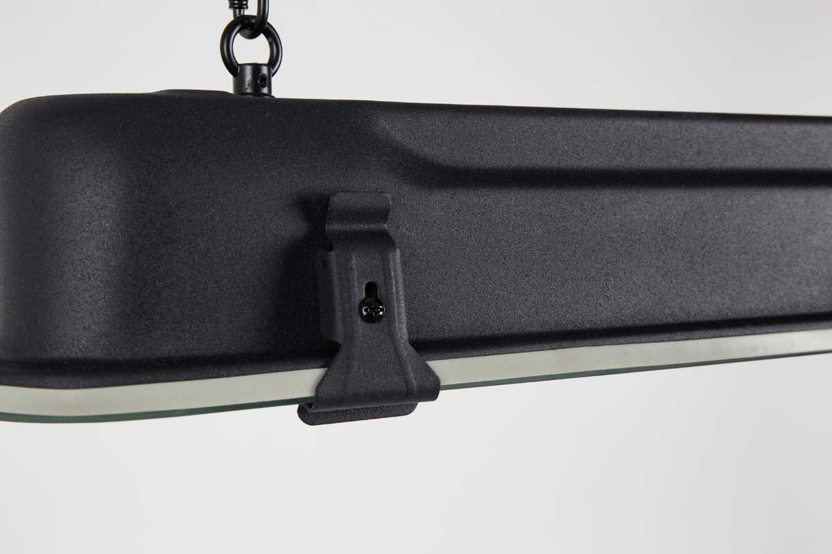 - Matt schwarze Pulver beschichteten Eisen Schatten und temperierte Glasplatte mit Metallgittern und herausnehmbarer PET-Folie. Schwarzpulver Eisen Baldachin und Ketten beschichtet. Schwarz PVC-Kabel.