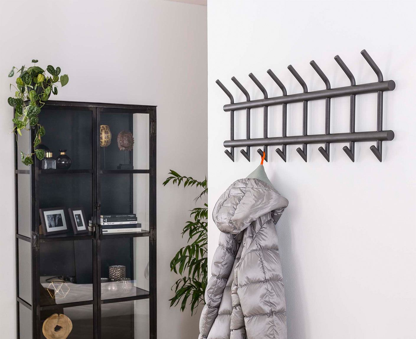 - Kleiderhaken aus grau matt pulverbeschichtetem Stahl