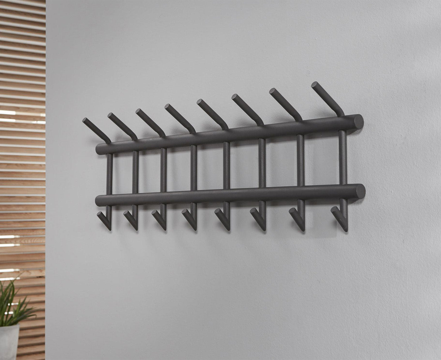 Garderobenpaneel mit 8 Kleiderhaken Dunkelgrau Matt