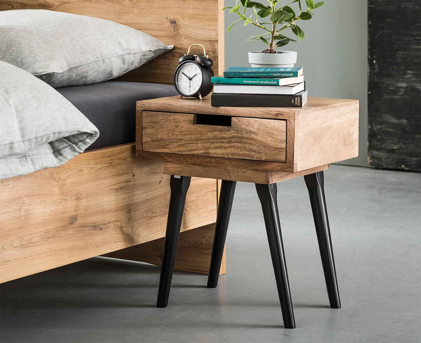 Gobi Nachttisch mit Schublade Mangoholz Massiv