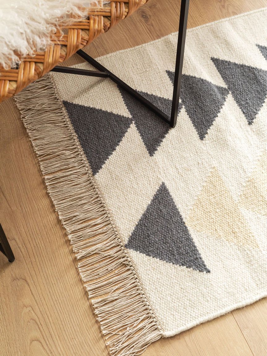 Handgewebter Kelim Teppich Läufer Vince 70x200 cm Elfenbein