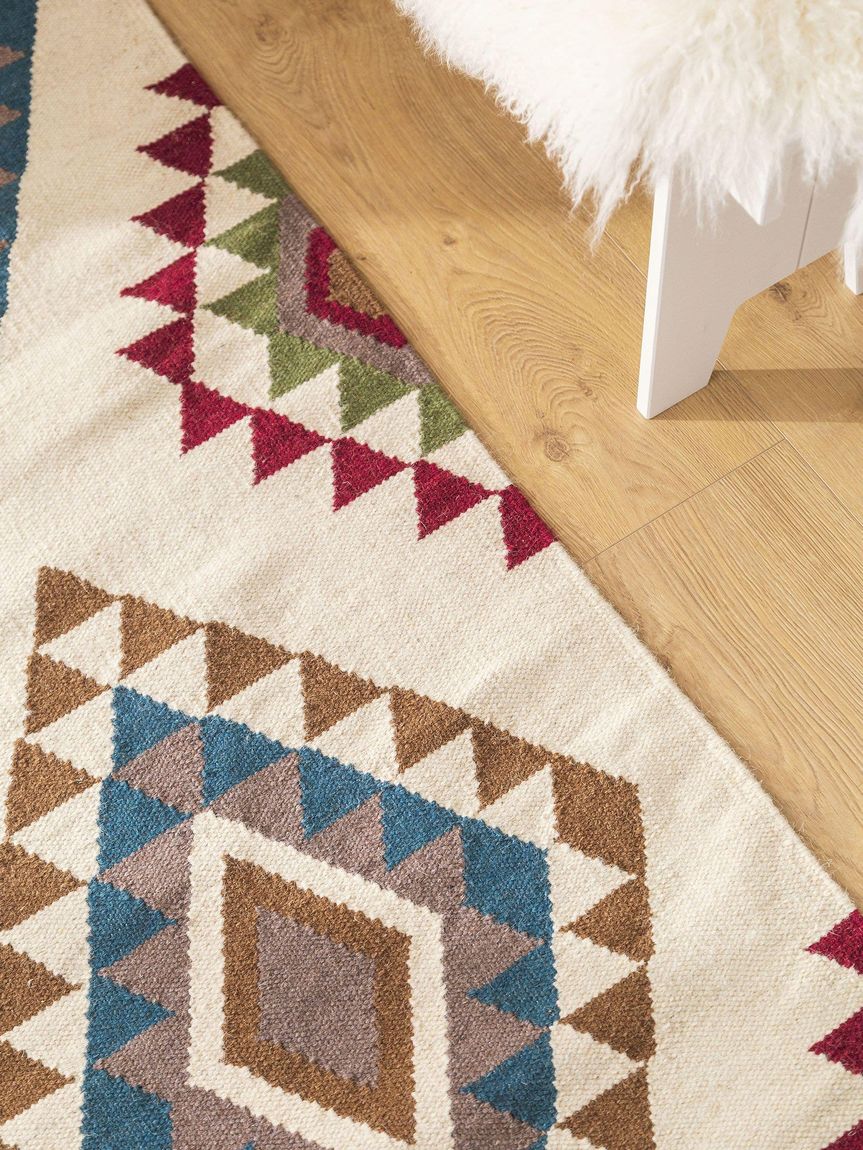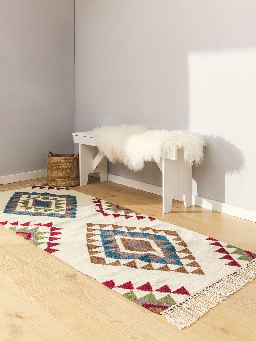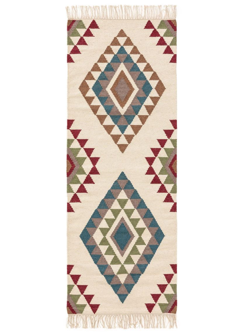 Handgewebter Kelim Teppich Läufer Zalan 70x200 cm Bunt / Blau