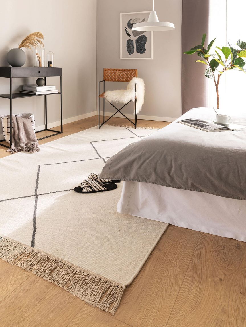 Handgewebter Kelim Wollteppich Vince Elfenbein