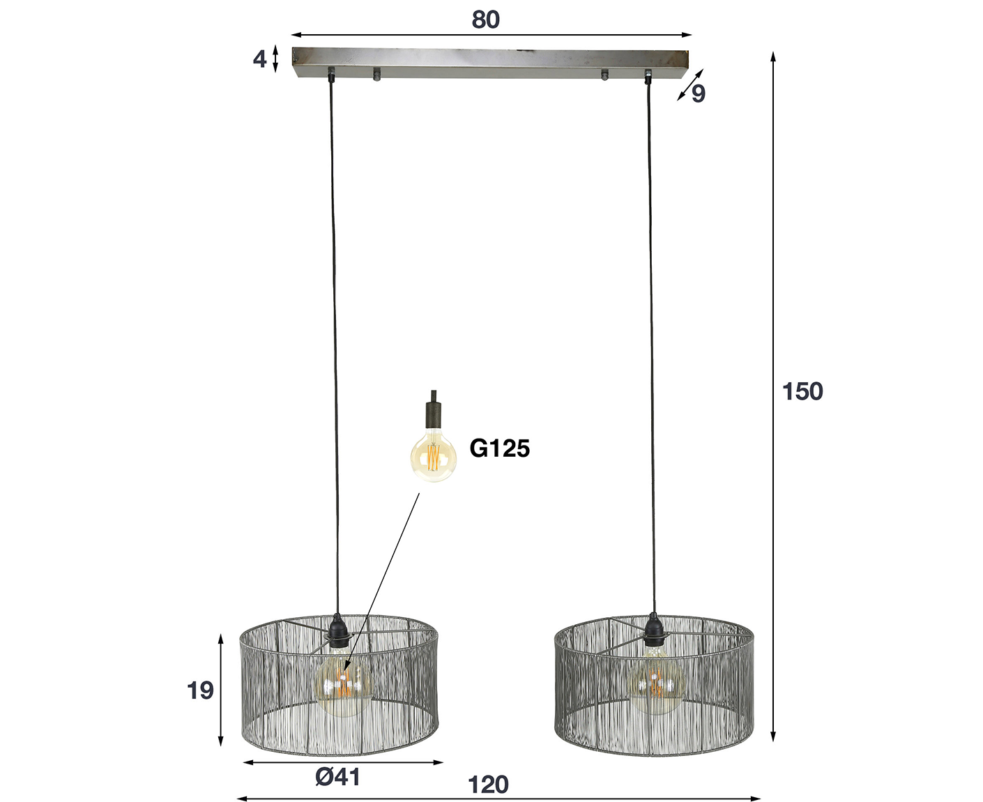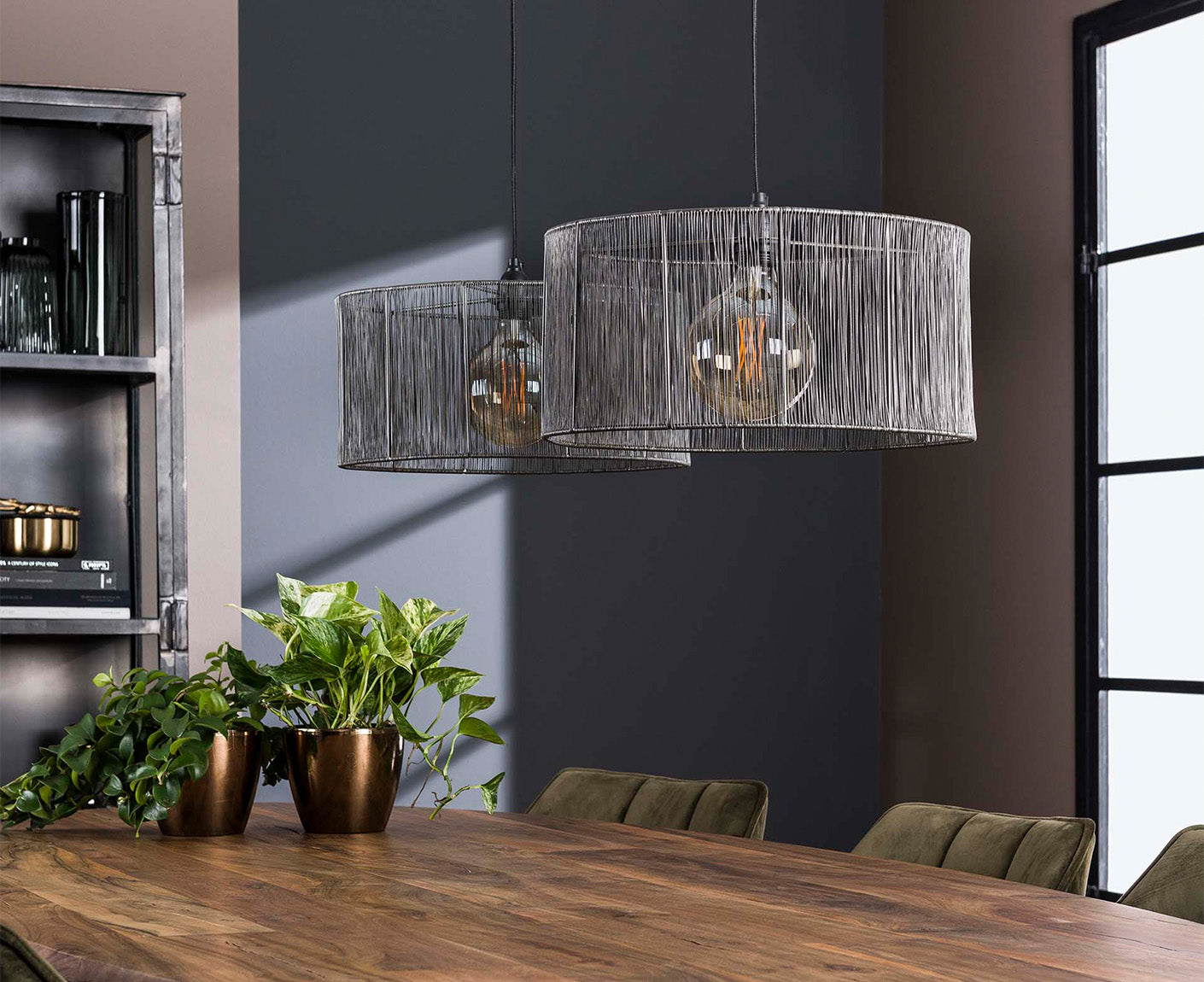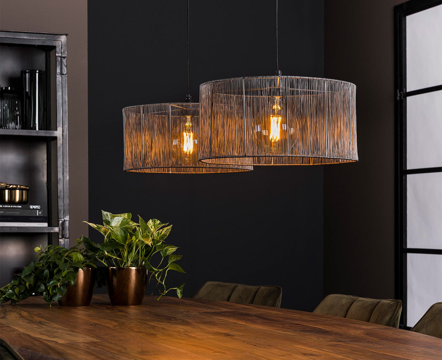 Hängelampe 2L Stringshade, Schwarz Nickel