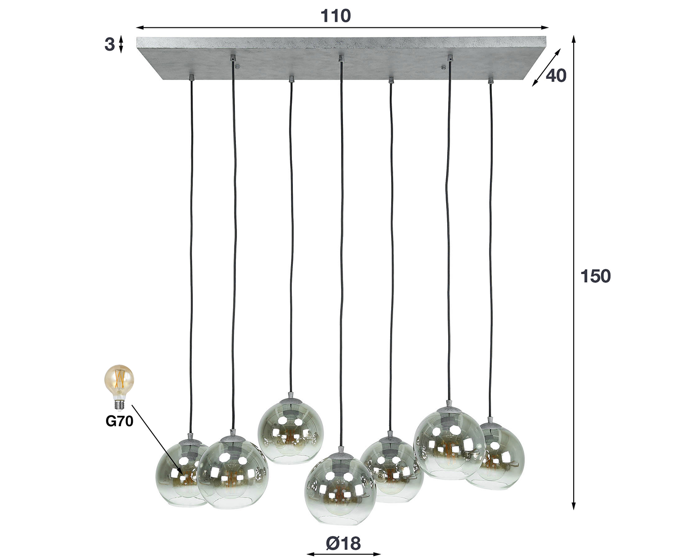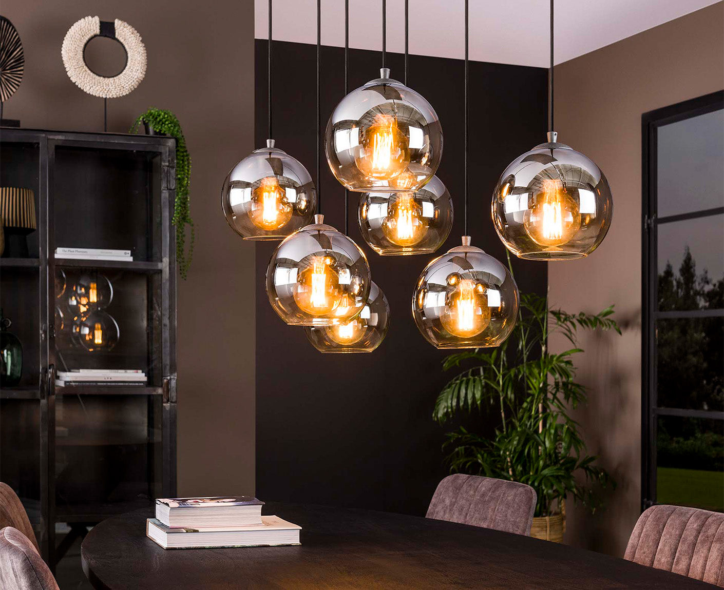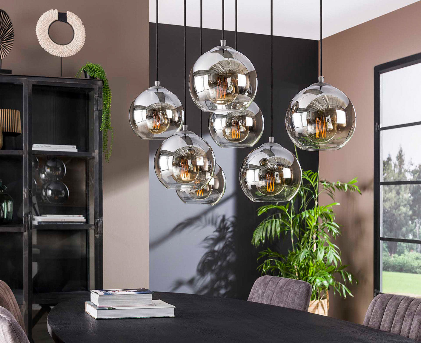 Hängelampe 4+3L Bubble Shaded, Rauchglas