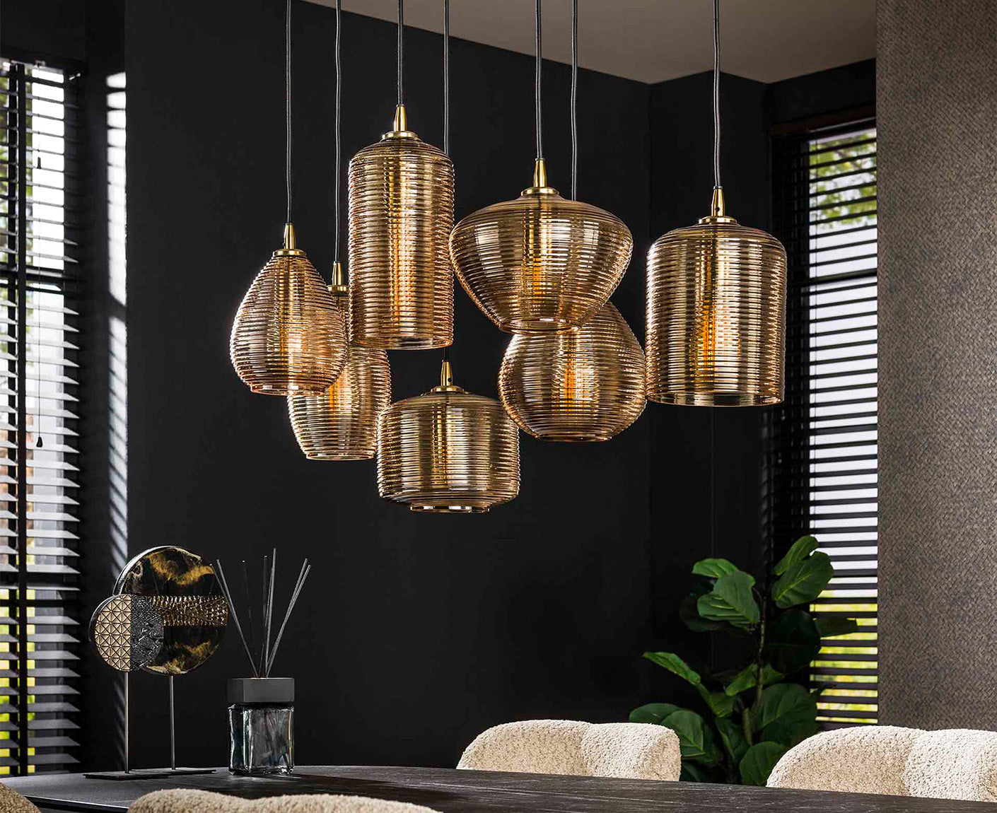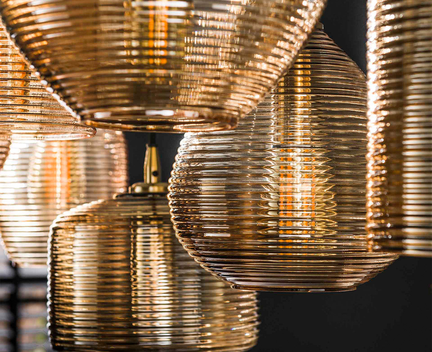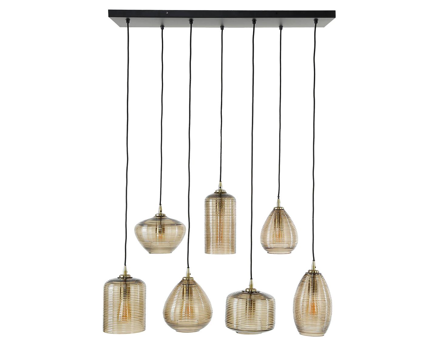 Hängelampe 4+3L, handgefertigtes gestreiftes Glas, Braunglas