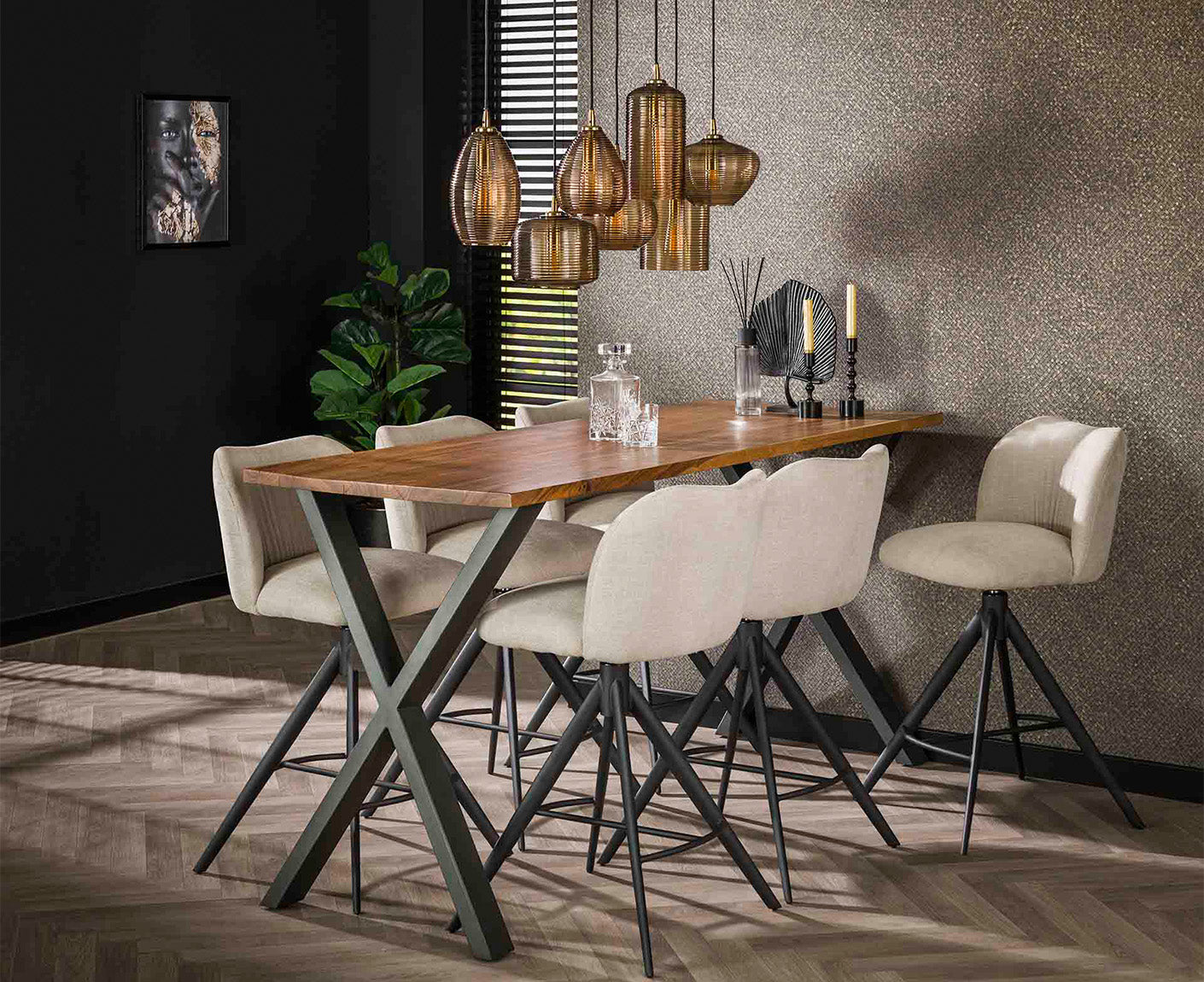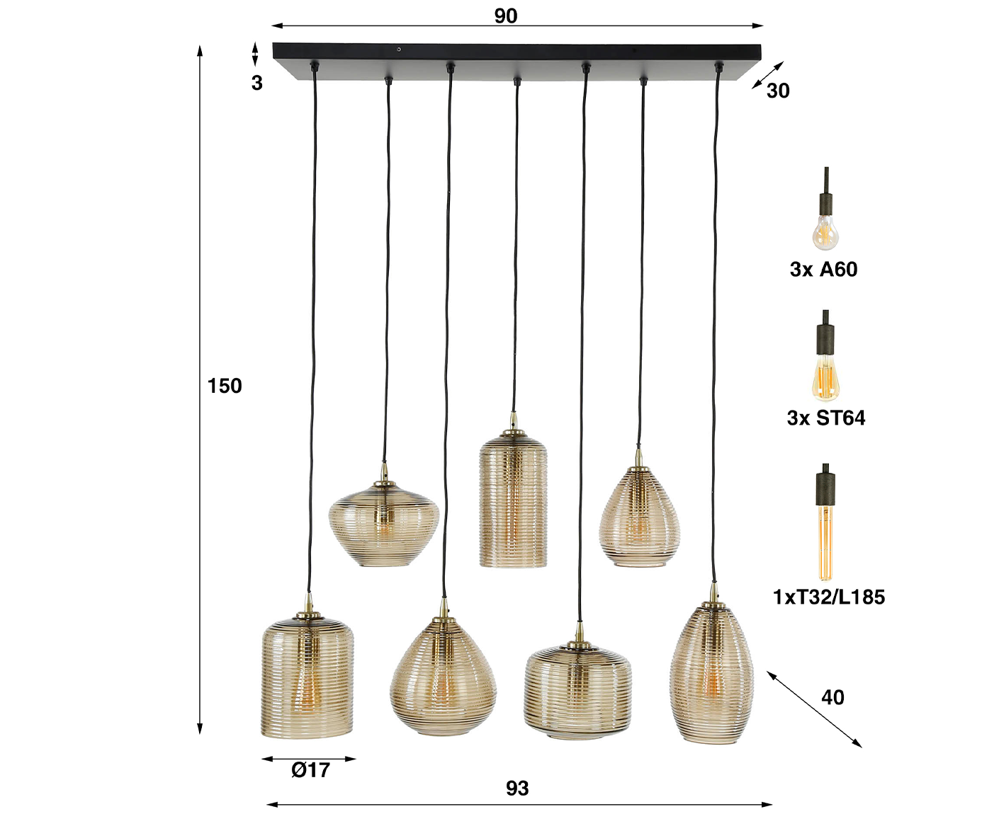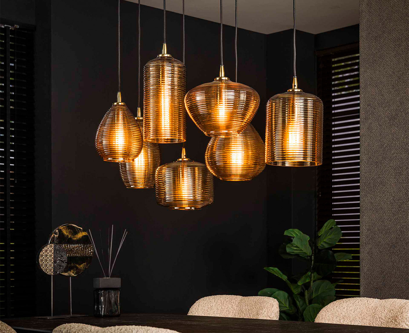 Hängelampe 4+3L, handgefertigtes gestreiftes Glas, Braunglas