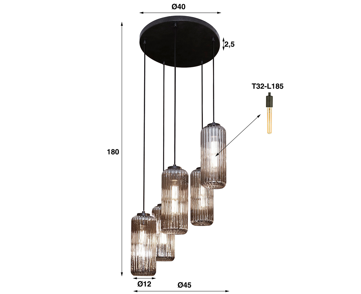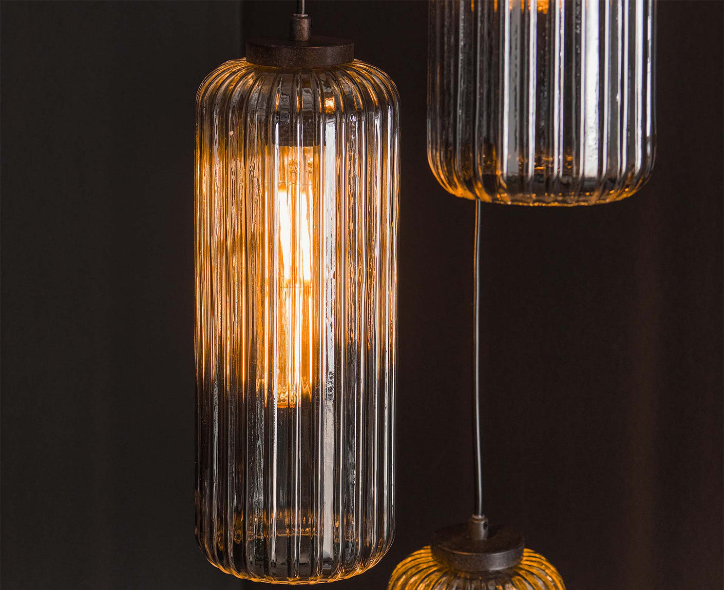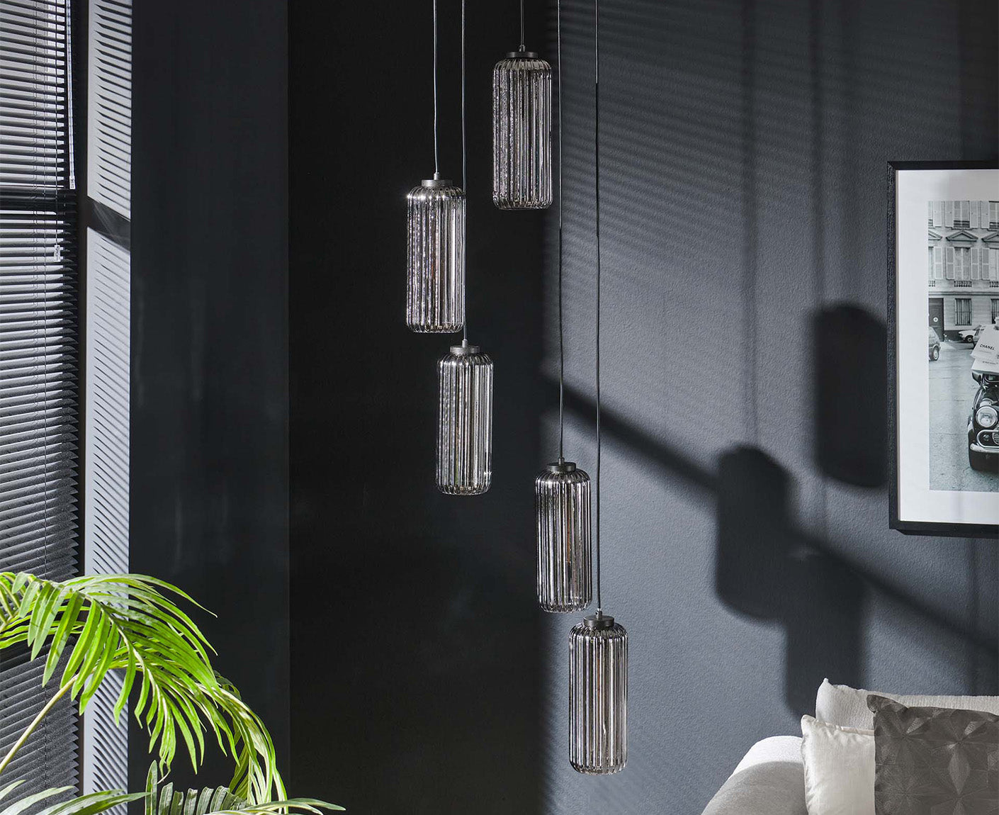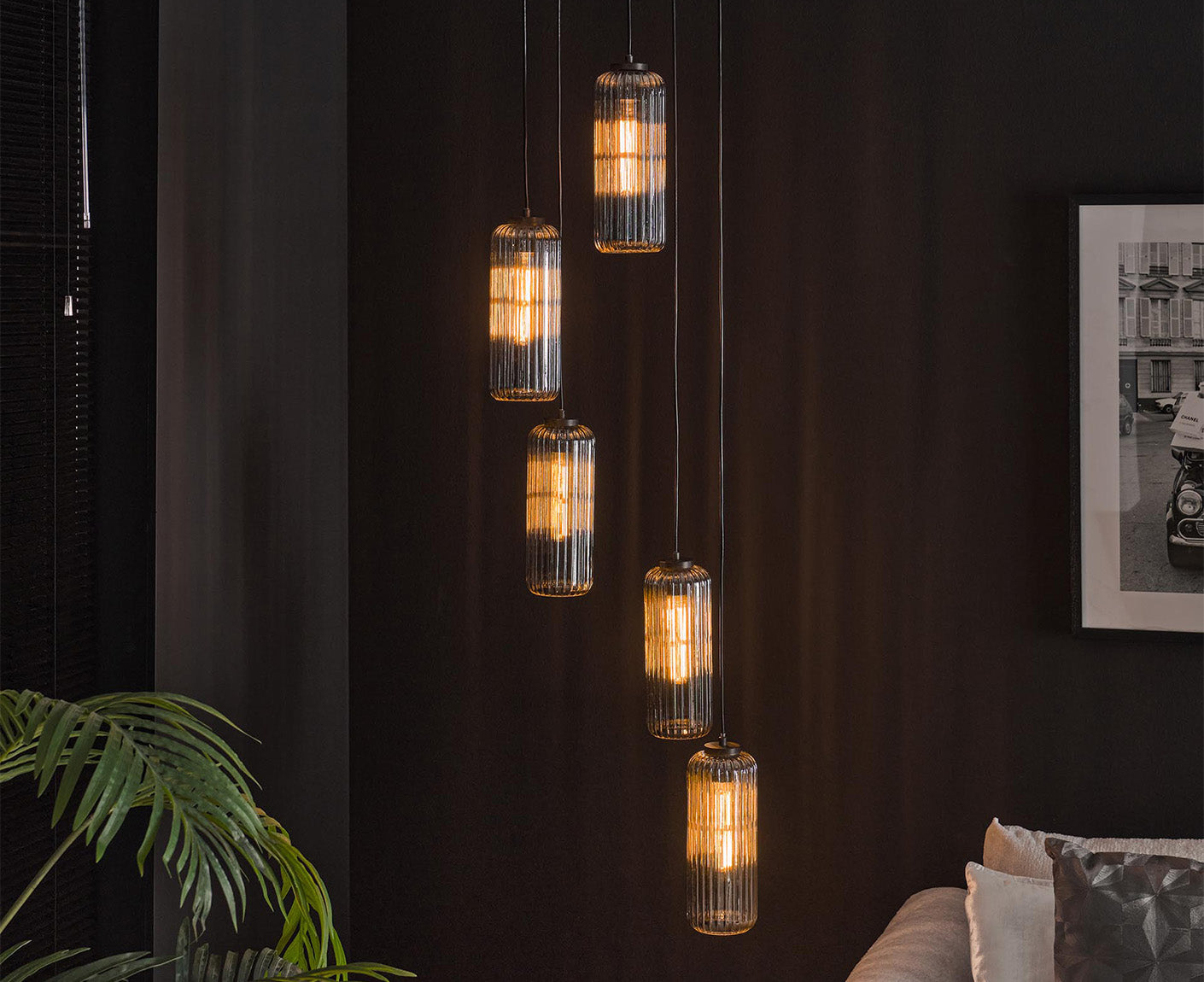 Hängelampe 5L Zylinder Ripped, Chrom / Glas