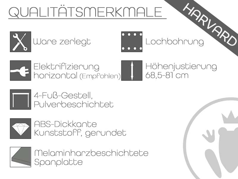 Harvard H-Serie Schreibtisch 180 x 100 cm, manuell höheneinstellbar, Eiche