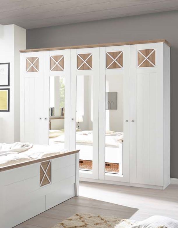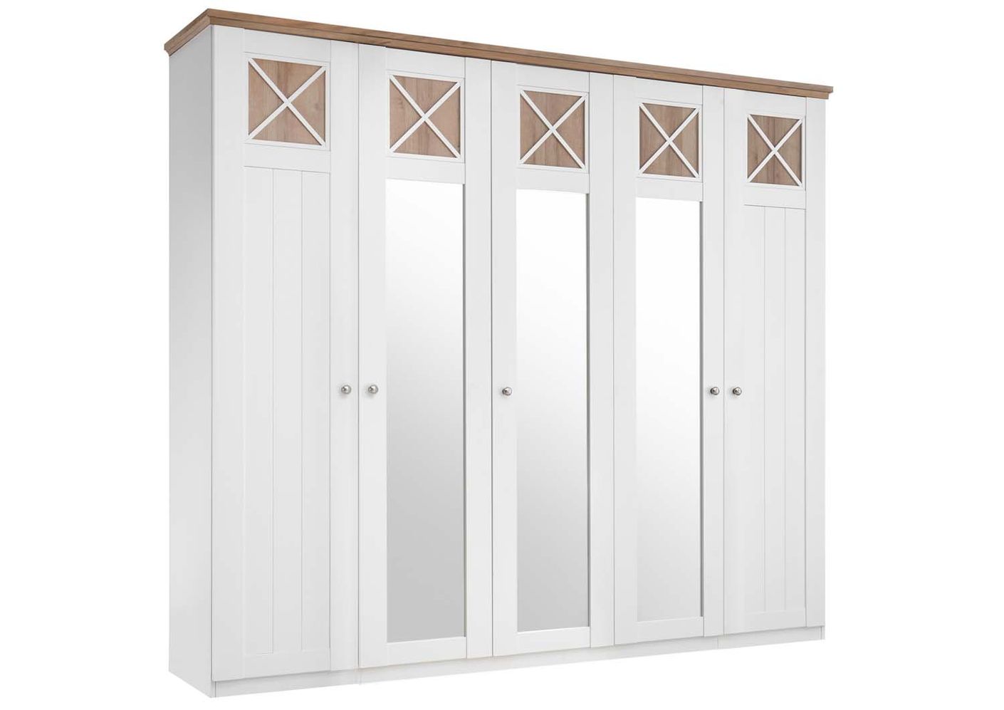 Helsinki Kleiderschrank mit Spiegel 5-türig Weiß / Riviera Eiche