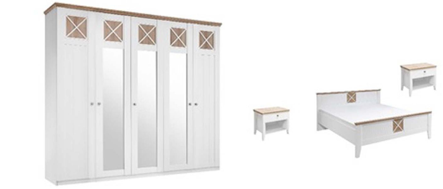Möbel der Serie: Kleiderschrank, Bett, Nachtkästchen, Kommode und Bett-Unterbau