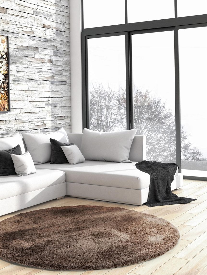 Hochflorteppich Cosy Ø 200 cm rund Hellbraun