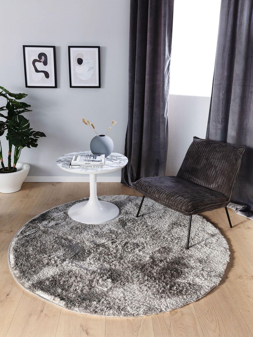 Hochflorteppich rund Francis Hellgrau