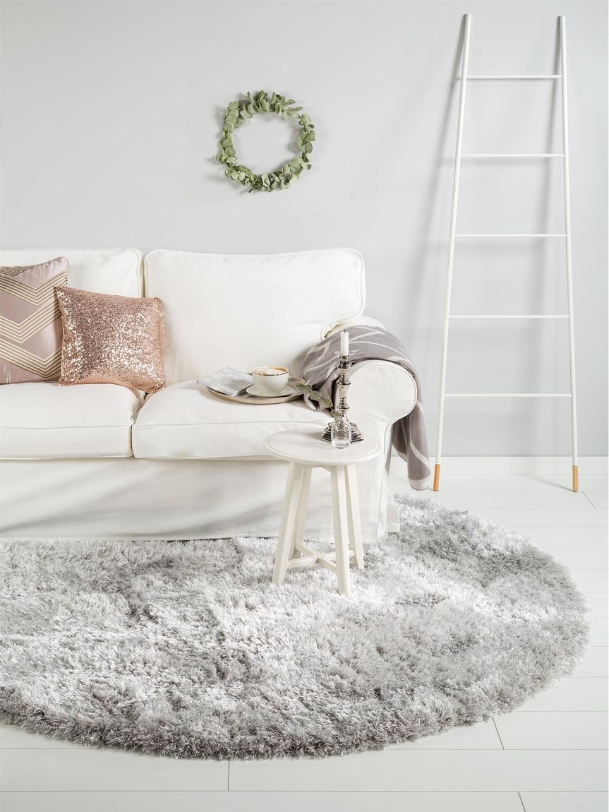 Hochflorteppich rund Lea Grau