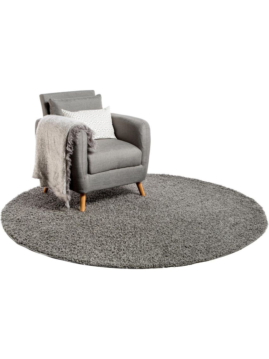 Hochflorteppich Swirls Ø 200 cm rund Dunkelgrau
