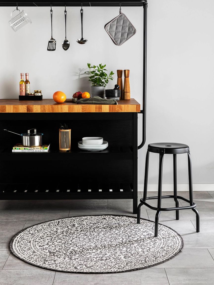 In- & Outdoor Teppich rund Cleo Weiß / Schwarz