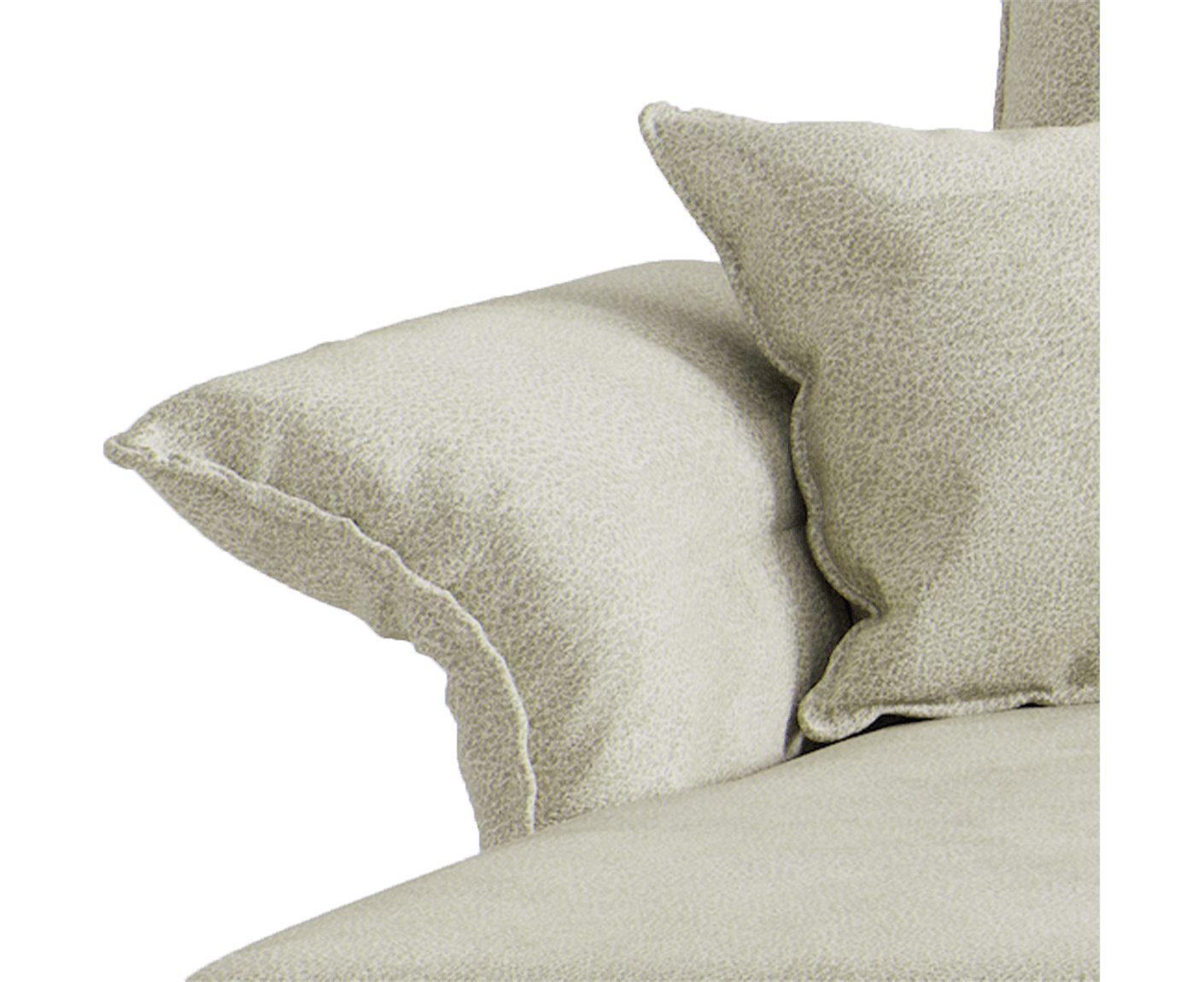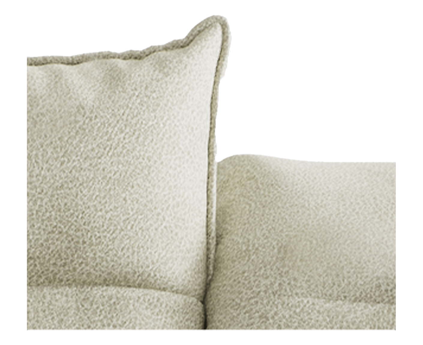 - Rückenpolster: geflockter Schaumstoff, gemischt mit silikonisierter Polyesterfaser