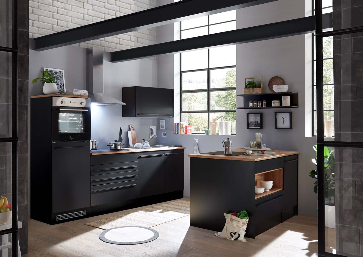 Jarklow Küchenblock 260 cm Schwarz Matt