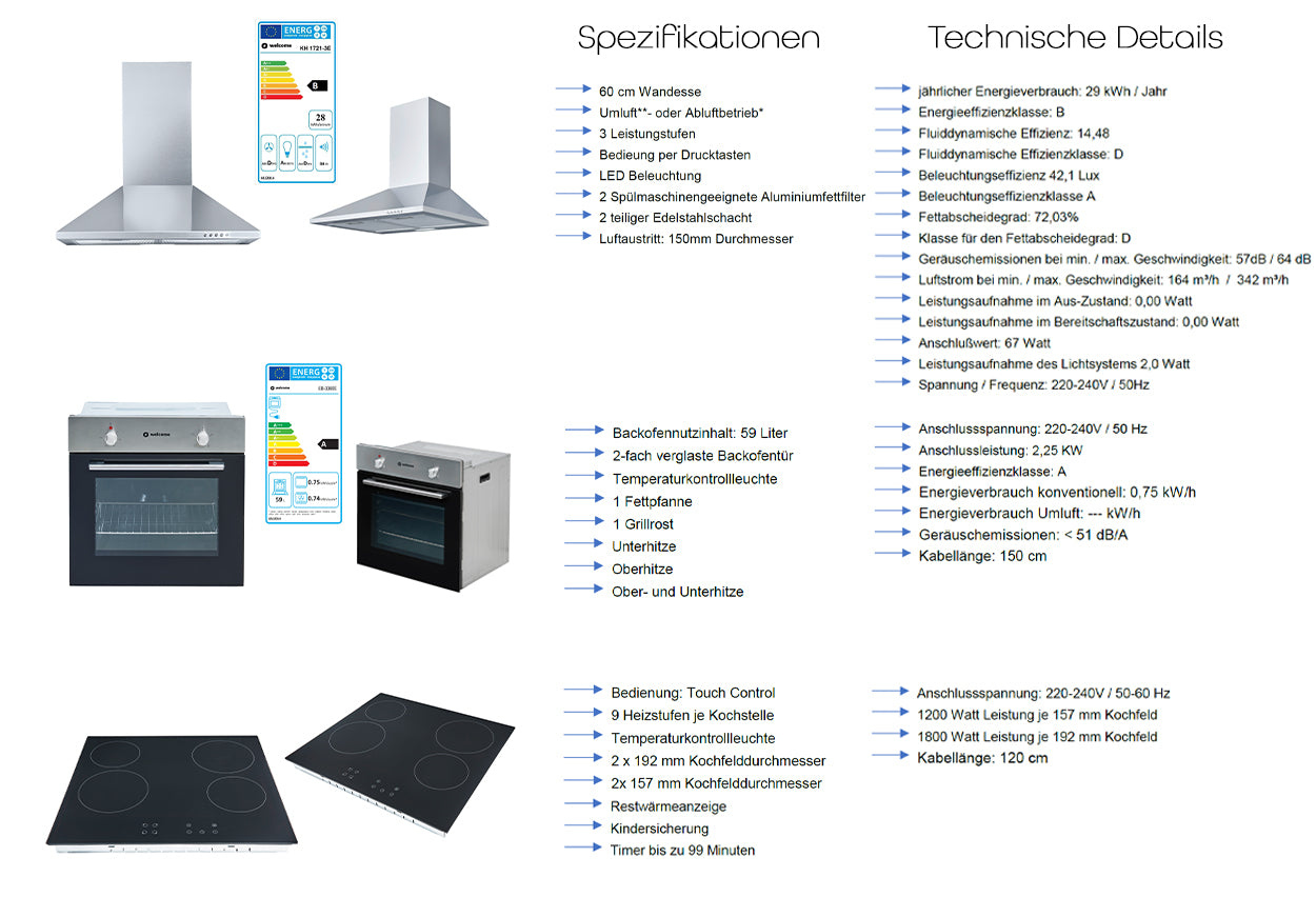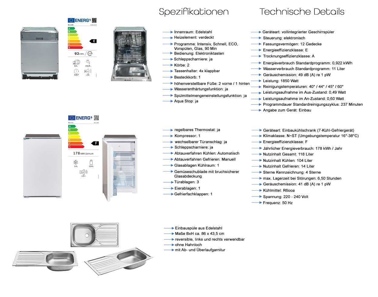 - Arbeitsplatte (wird ohne Ausschnitte geliefert): 28 mm Stärke