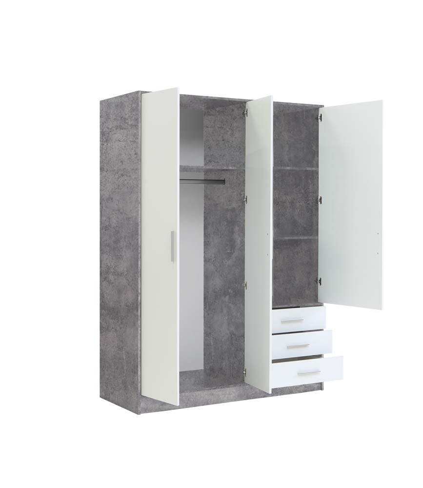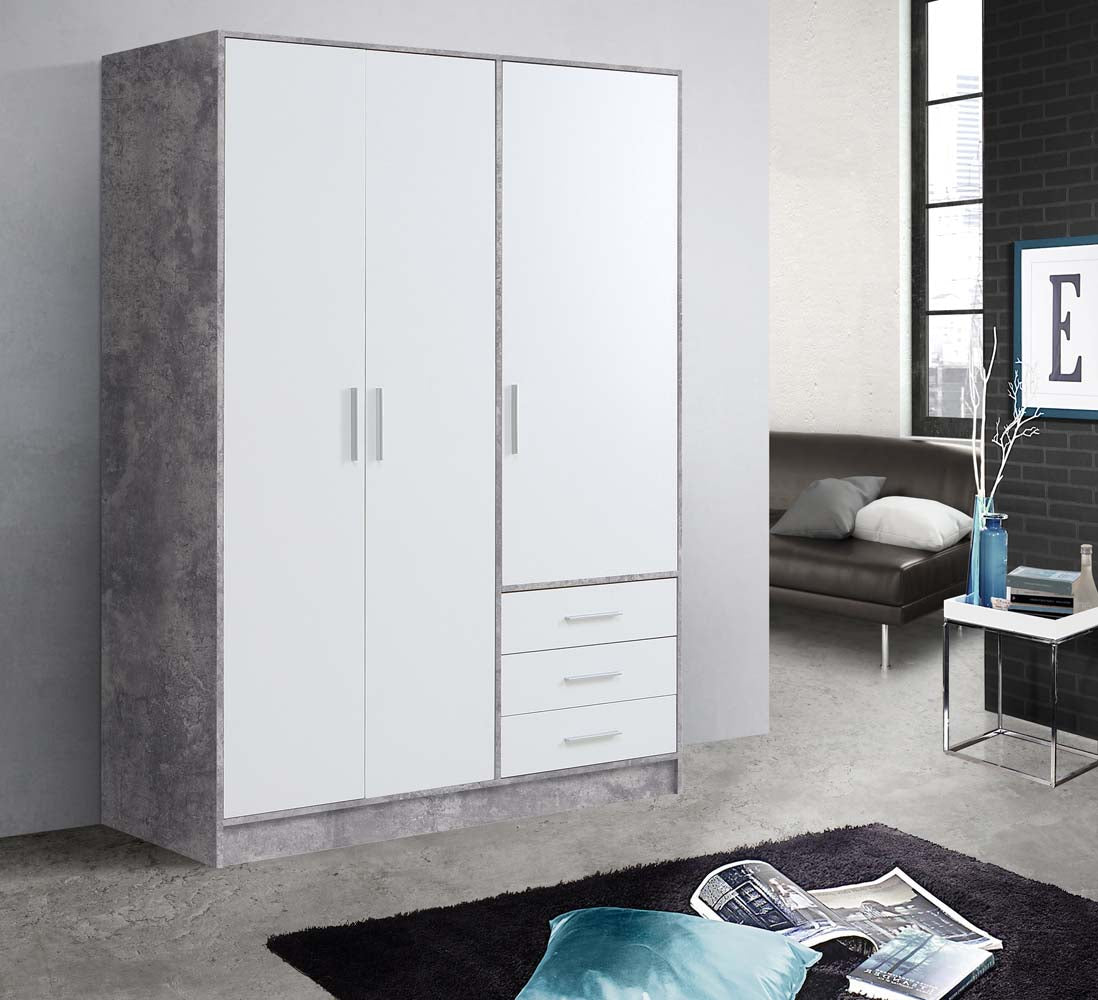 JONA Kleiderschrank 3-türig Lichtgrau / Weiß