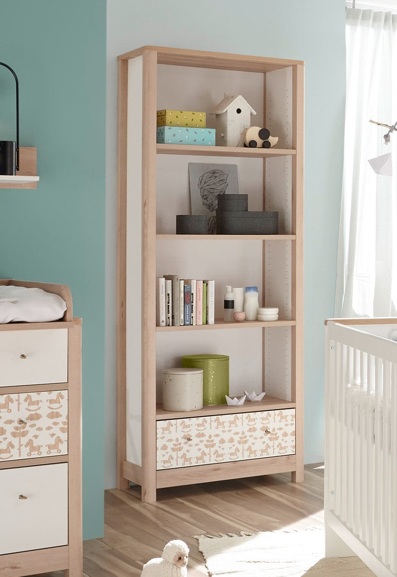 Möbel der Serie: Kleiderschrank, Babybett, Regale, Wickelkommode, Wandboard