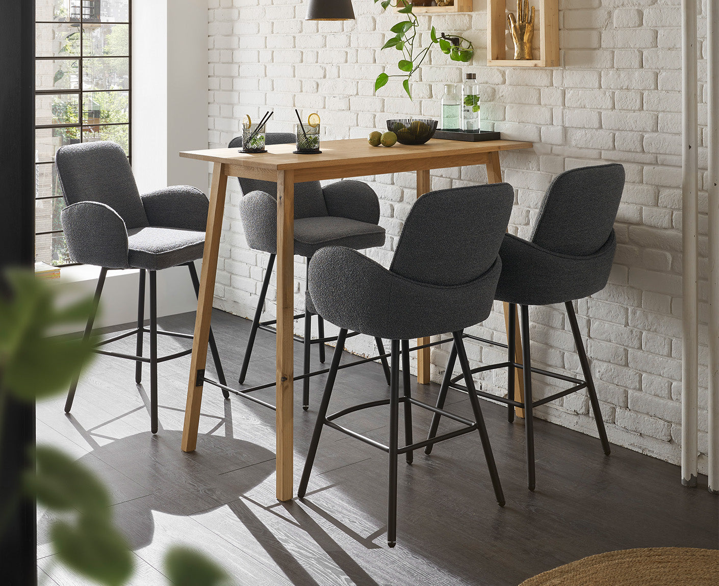 - Tischplatte: 20 mm Eiche Massivholz geölt, mit durchgehender Lamelle
