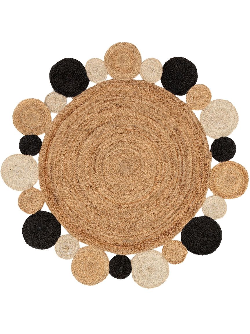 Juteteppich Jutta Ø 120 cm rund Hellbraun / Schwarz