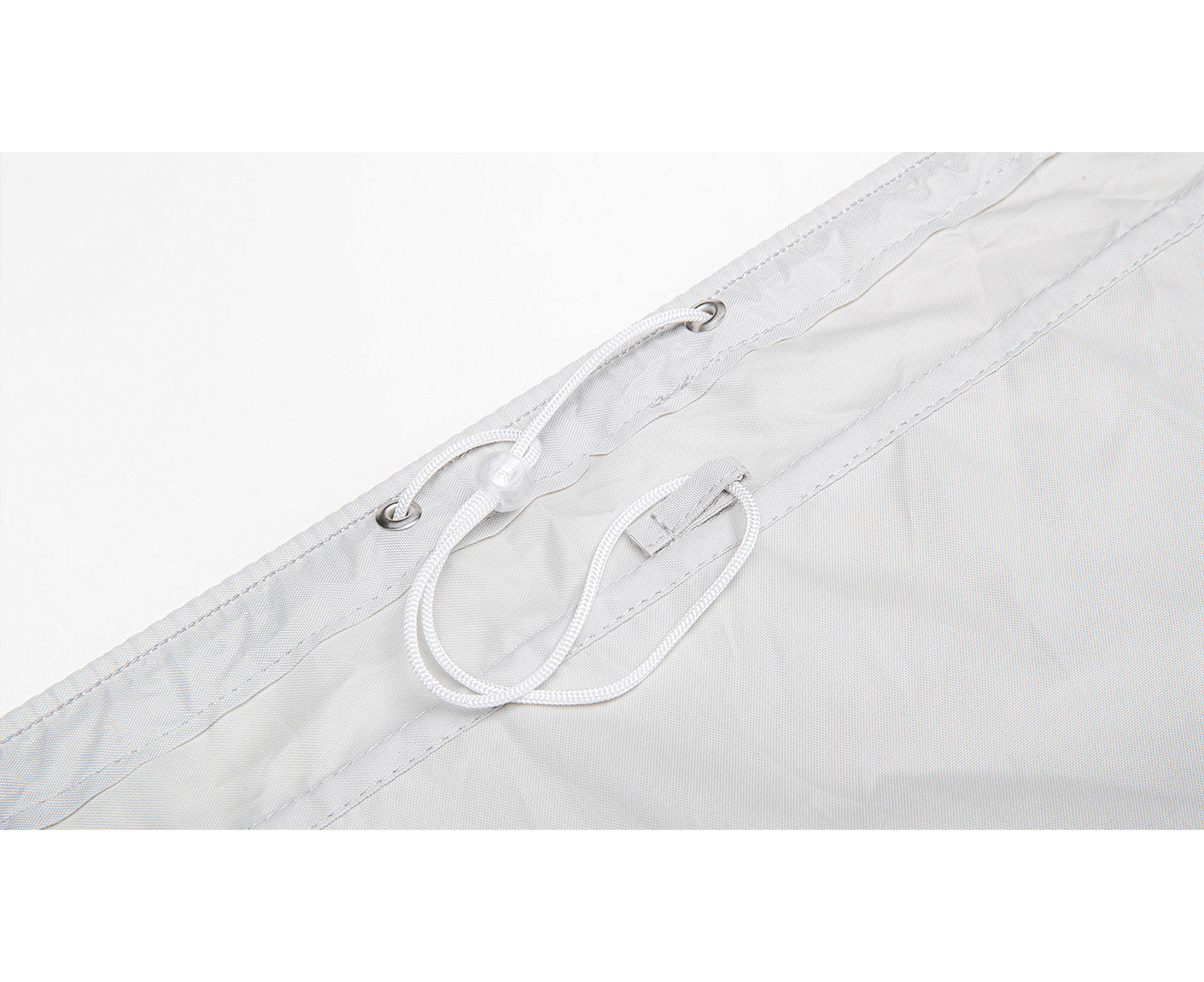 - Einfaches Festziehen der Abdeckung durch eingenähtes Gummiband mit Stoppern an zwei Seiten