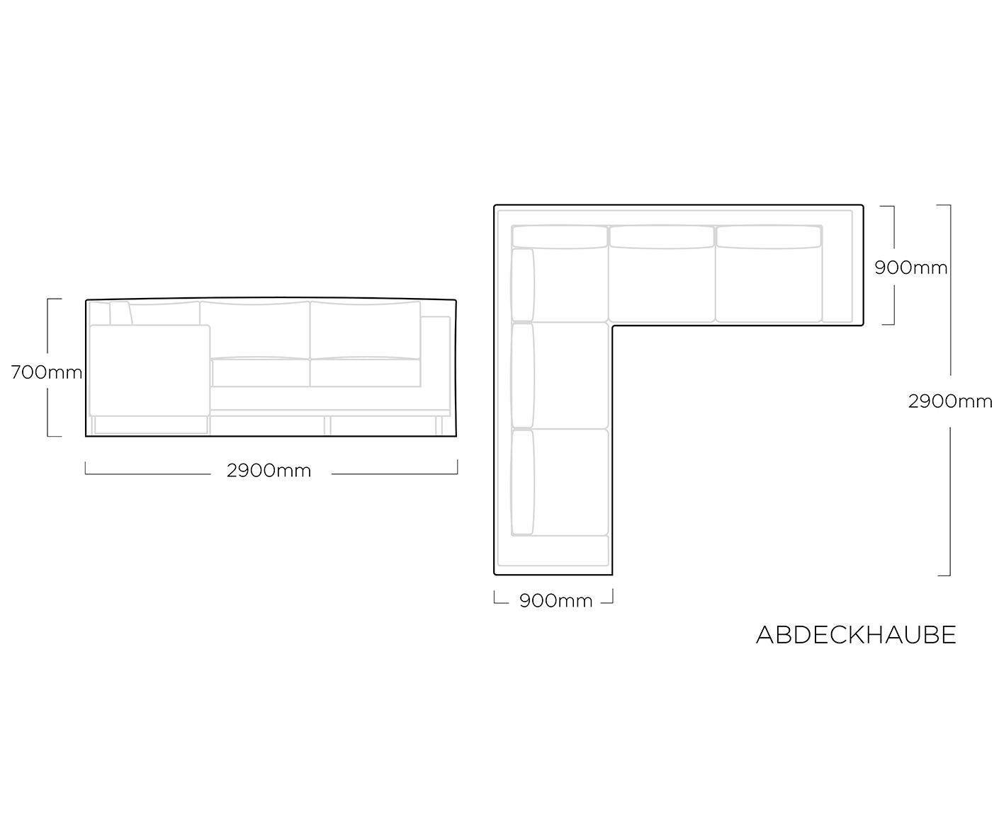 - Abmessung: 290 x 90 x 70 cm (BxTxH)