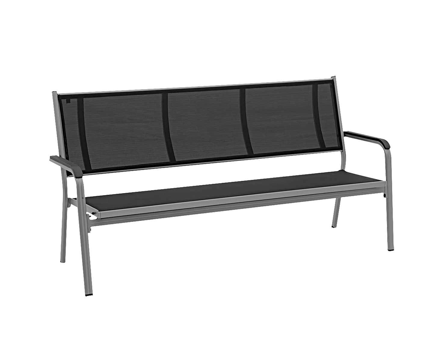 - Solides, formschönes Aluminium-Gestell mit Kunststoff-Armlehne