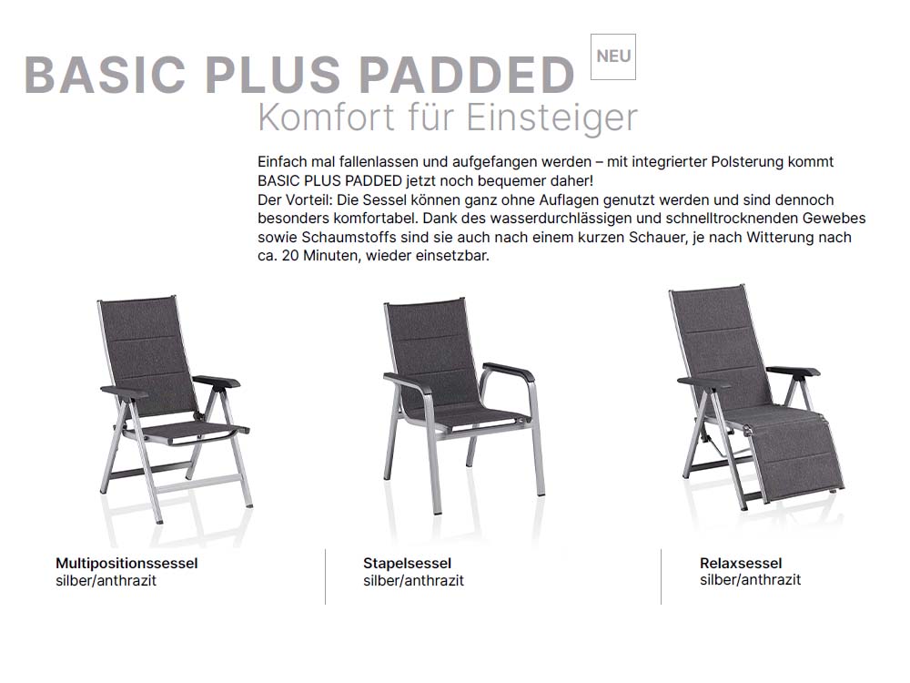 Kettler Basic Plus Padded Stapelsessel, montiert, Silber / Anthrazit