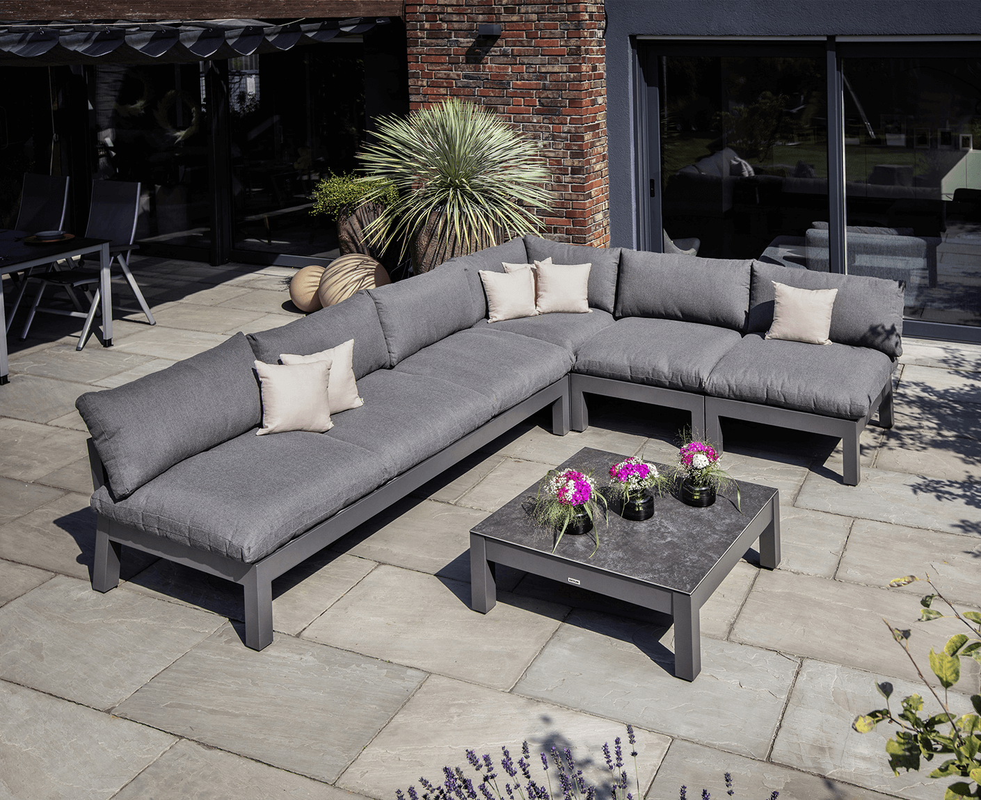 - Geradlinige Aluminium Lounge-Serie mit fluffig, extra dicken Sitzkissen