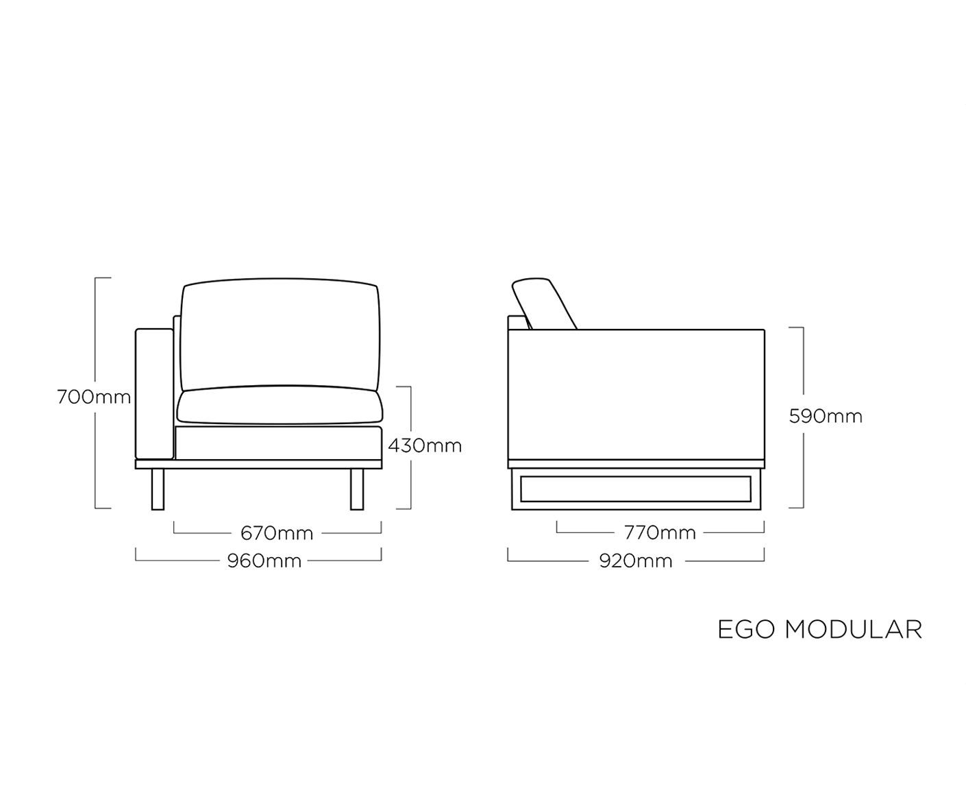 Kettler Ego Modular Endteil Links Silber / Hellgrau Sunbrella