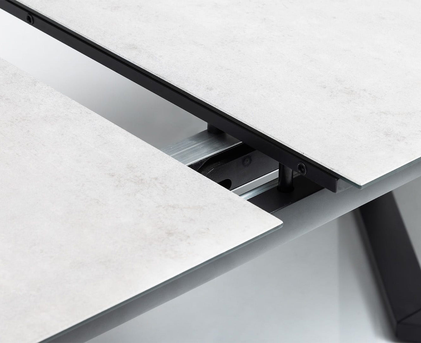 - Mehrschichtiger Aufbau mit stabilisierender Tischplatte aus Keramik und Glas