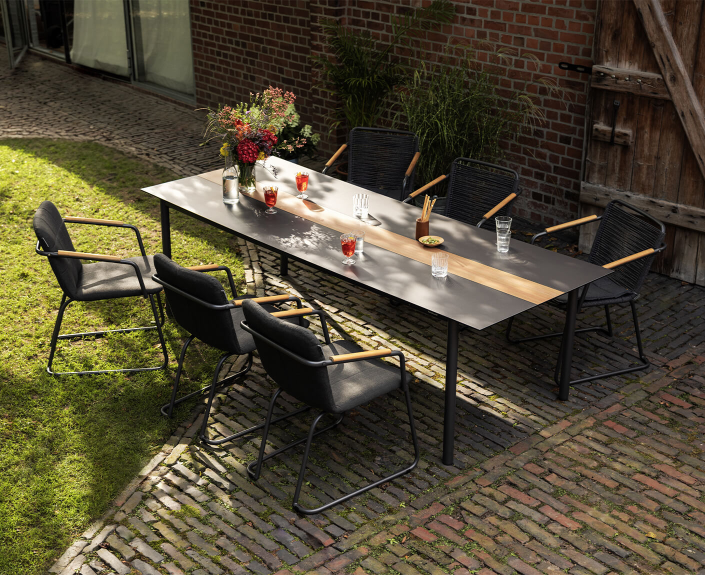 Kettler HPL Tischplatte 250 x 97 cm Dunkelgrau / Teak Optik