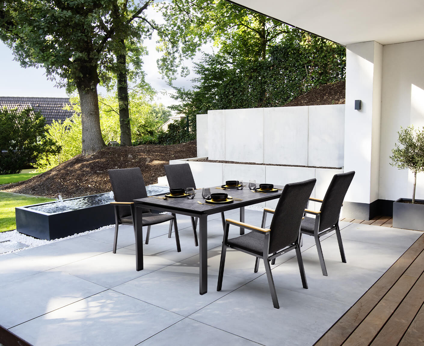 - Stoffbezug: Outdoorgewebe bzw. Sunbrella
