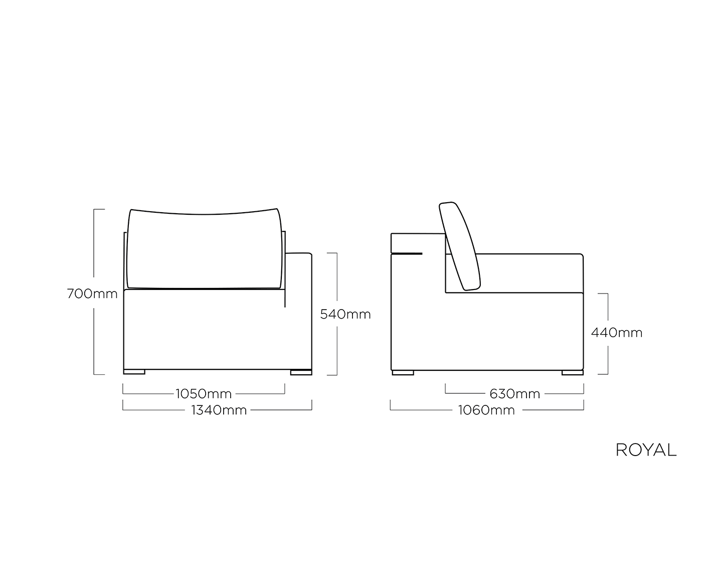 Kettler Royal Lounge Endteil Rechts Silber / Anthrazit Sunbrella