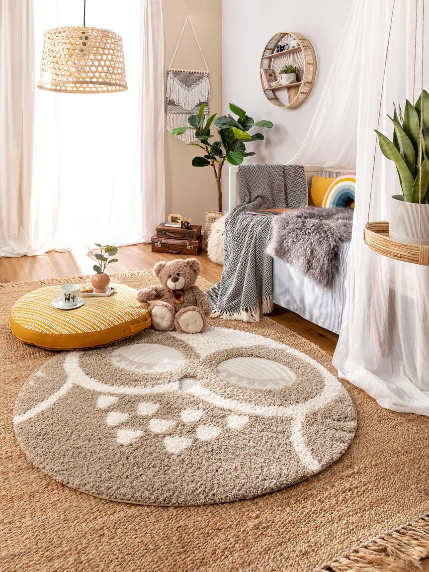 Kinderteppich Carlo Ø 120 cm rund Creame / Taupe
