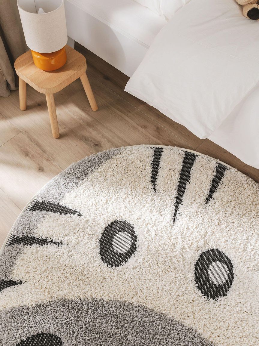 Kinderteppich Carlo Ø 120 cm rund Grau / Weiß