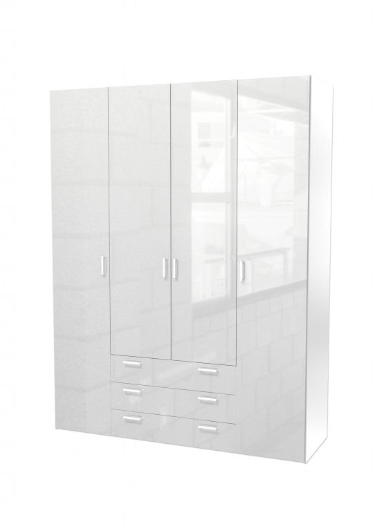 Kleiderschrank SPACE Schrank Türenschrank Weiß Hochglanz