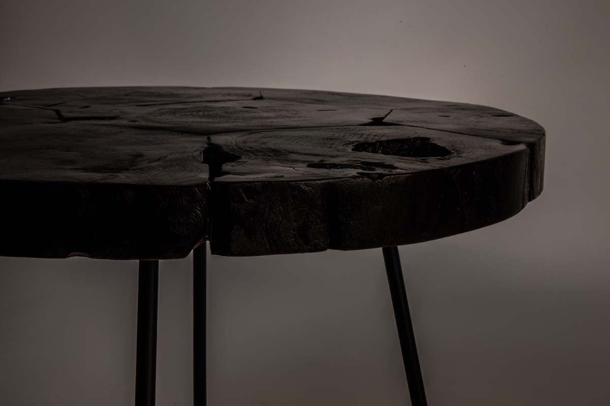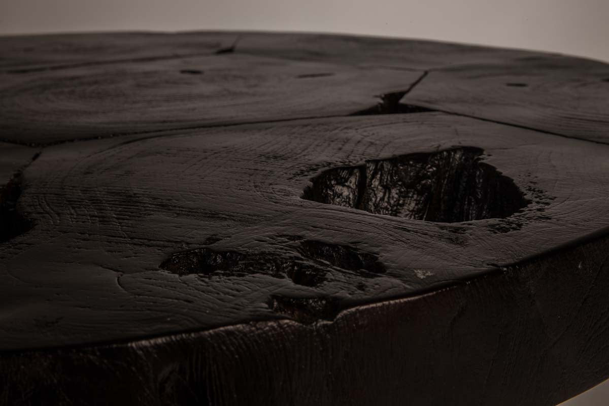 - Schokolade gemalt Teak massiv Tischplatte mit schwarz lackiertem Eisenrahmen.