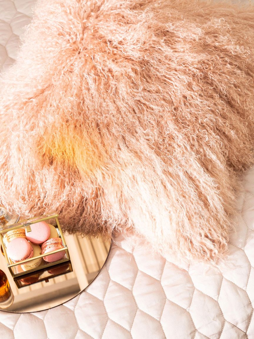 Langhaar-Schafsfell Kissenbezug Wilson 40x40 cm Rosa