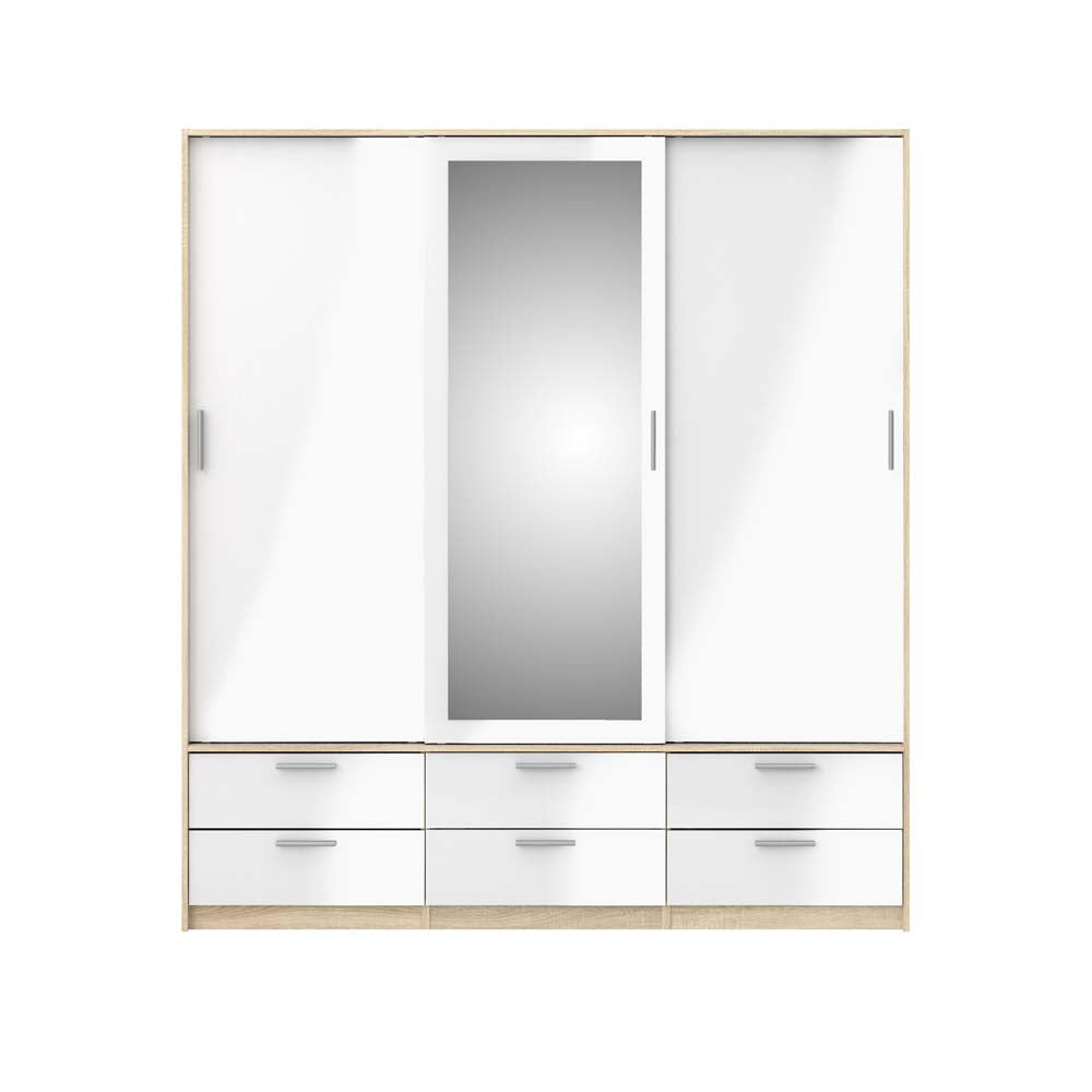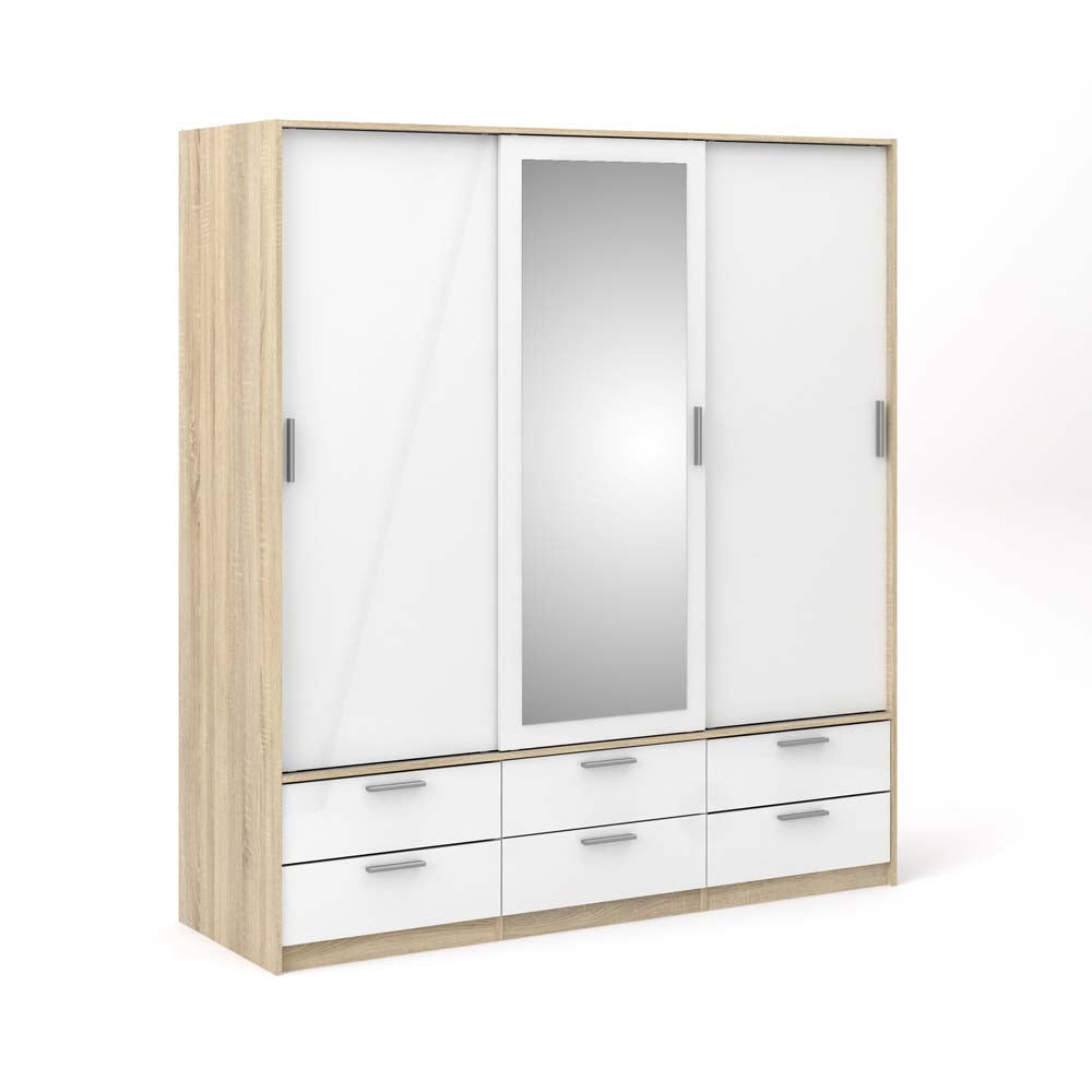 Line Kleiderschrank Eiche Struktur Weiß Hochglanz