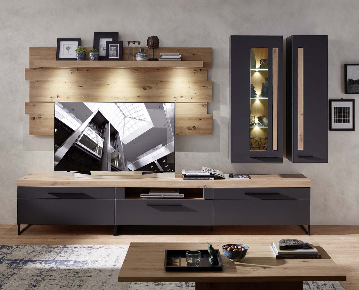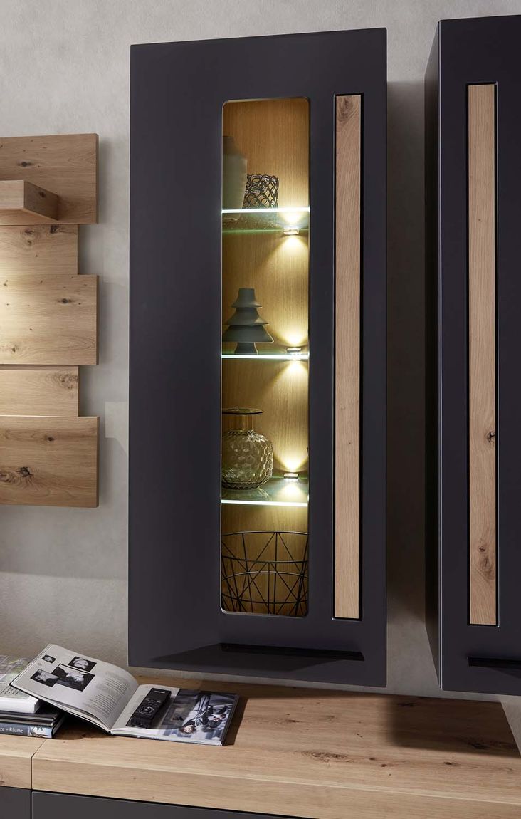 Loft-Two Hängevitrine inkl. LED-Beleuchtung Graphit/Abs. Artisan Eiche