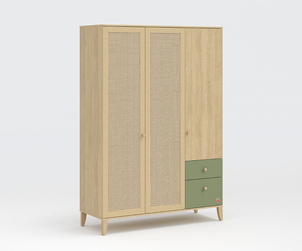 Loof Baby 3-türiger Kleiderschrank Braun / Grün