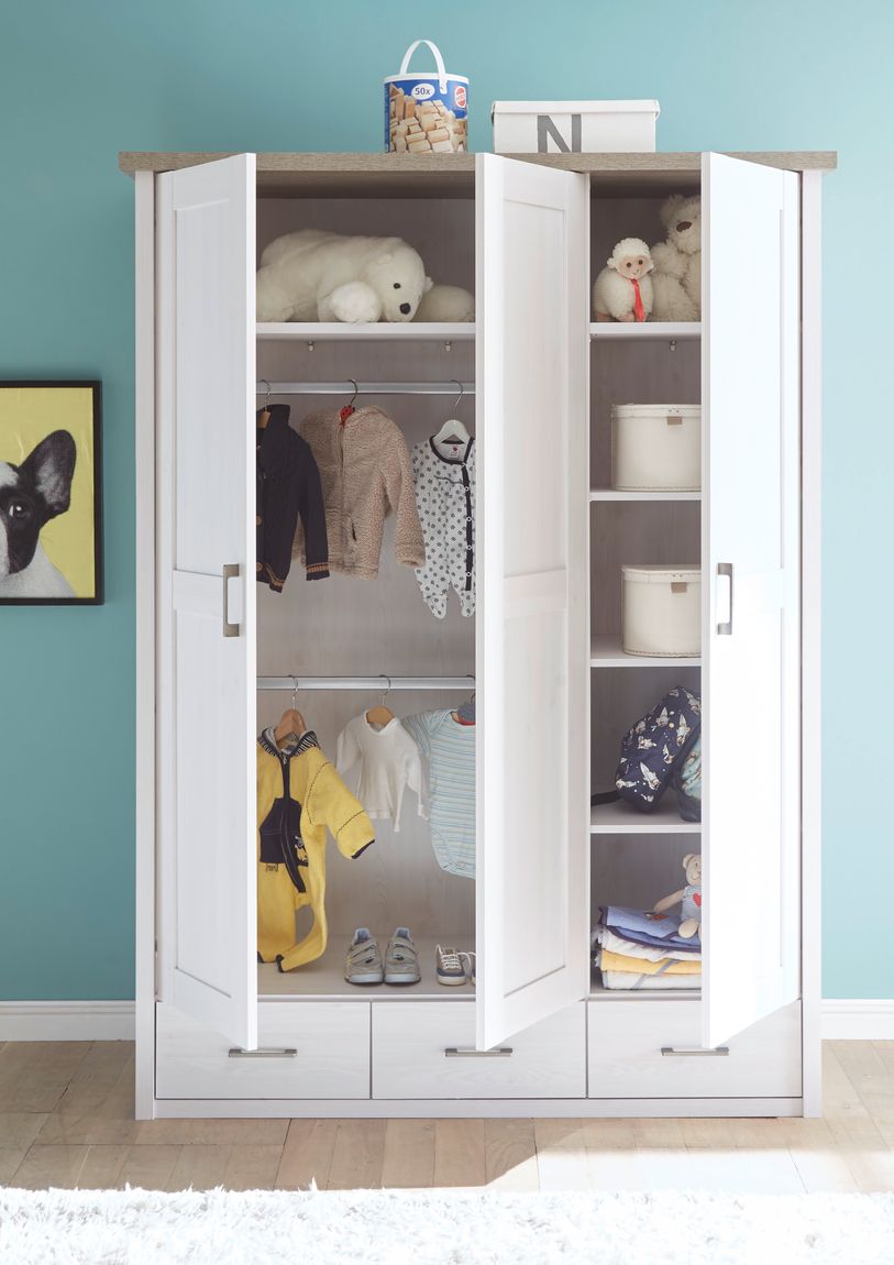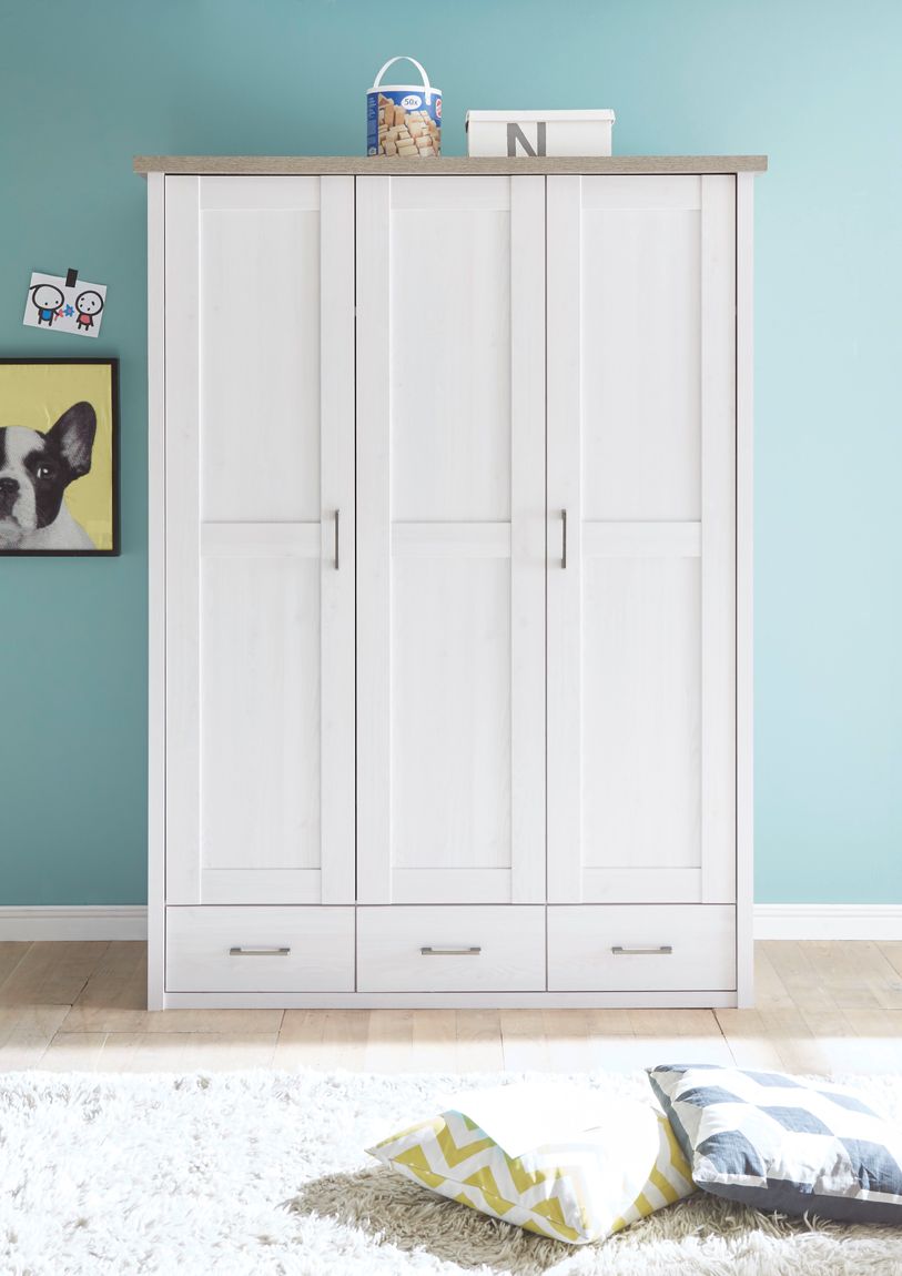 Luca Kleiderschrank 3-trg. 148 cm Pinie Weiß / Trüffel