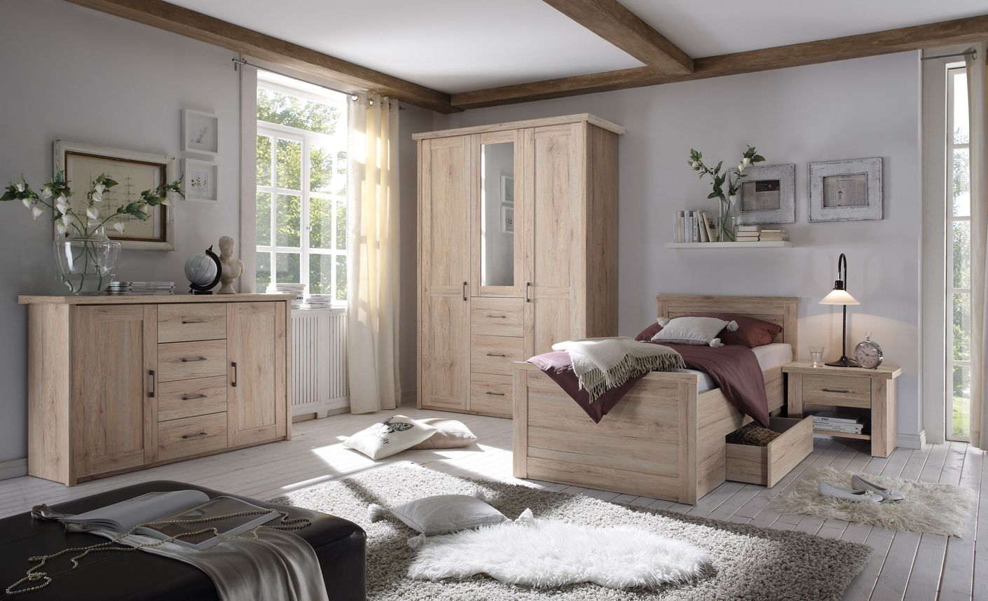 Möbel der Serie: Kleiderschränke, Bett, Nachtkommode, Kommode