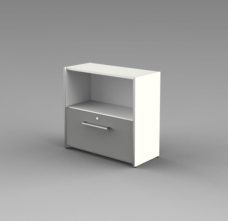 - 1 breites Regal 2 OH mit Schubladen für Hängeregistratur.