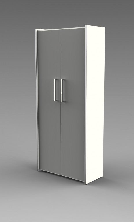 - 1 breites Regal 5 OH mit Holztürenpaar 5 OH und 4 Fachböden.