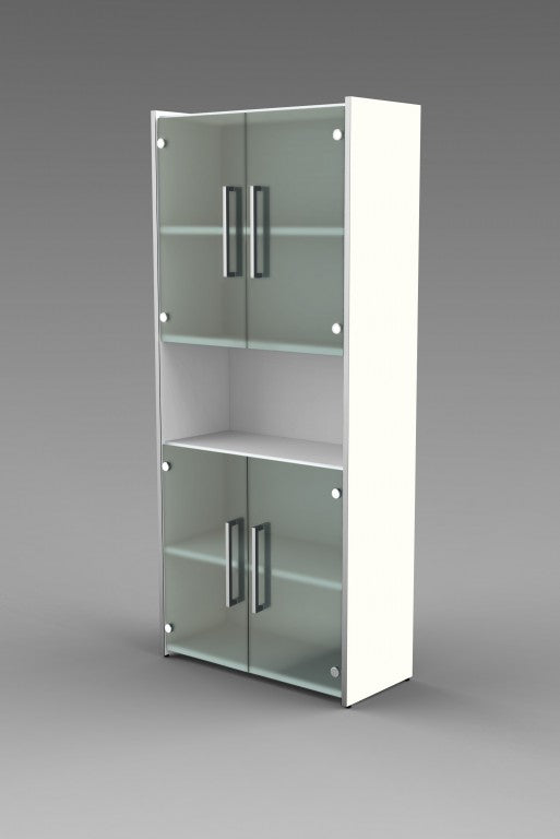 - 1 breites 2 OH Regal mit Glastürenpaar und 1 Fachboden
